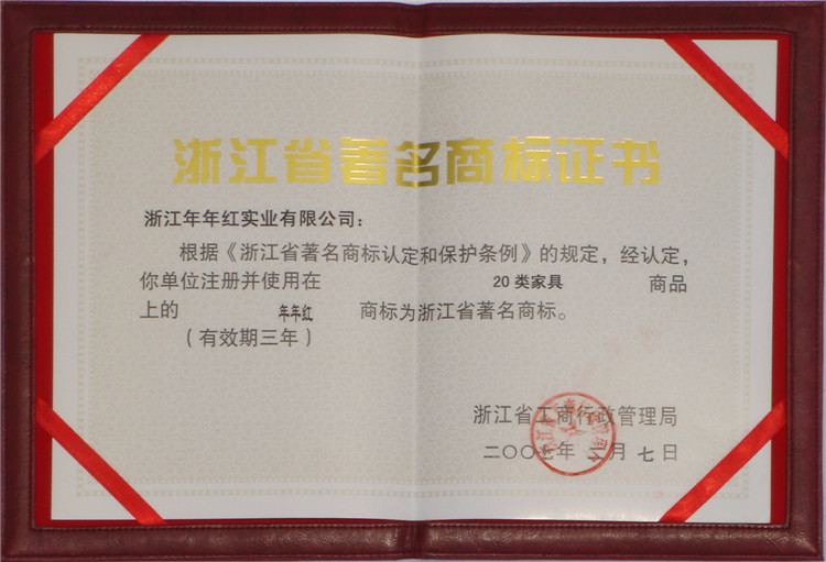 著名商標證書